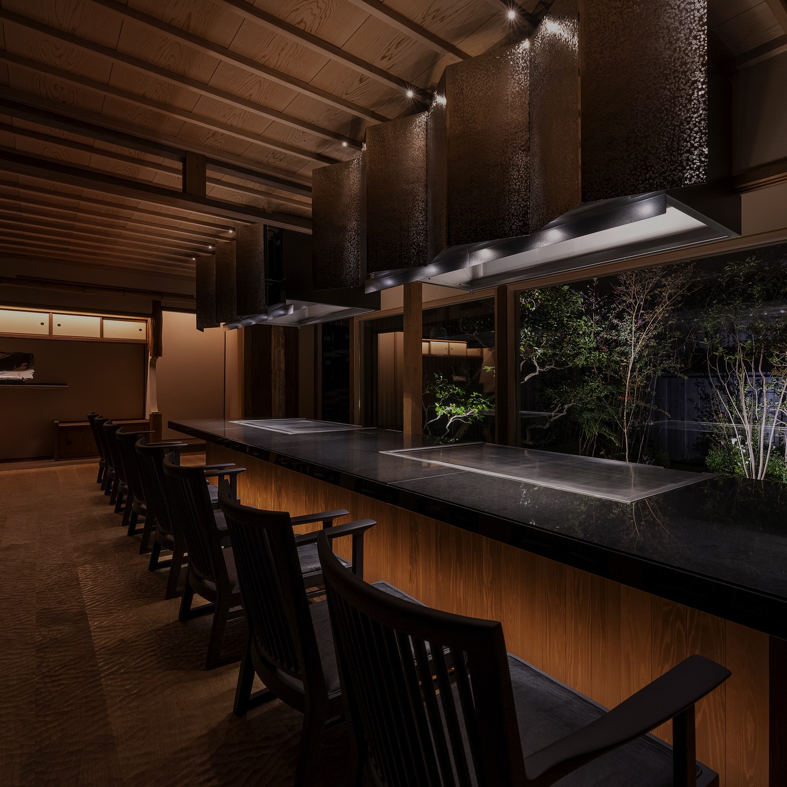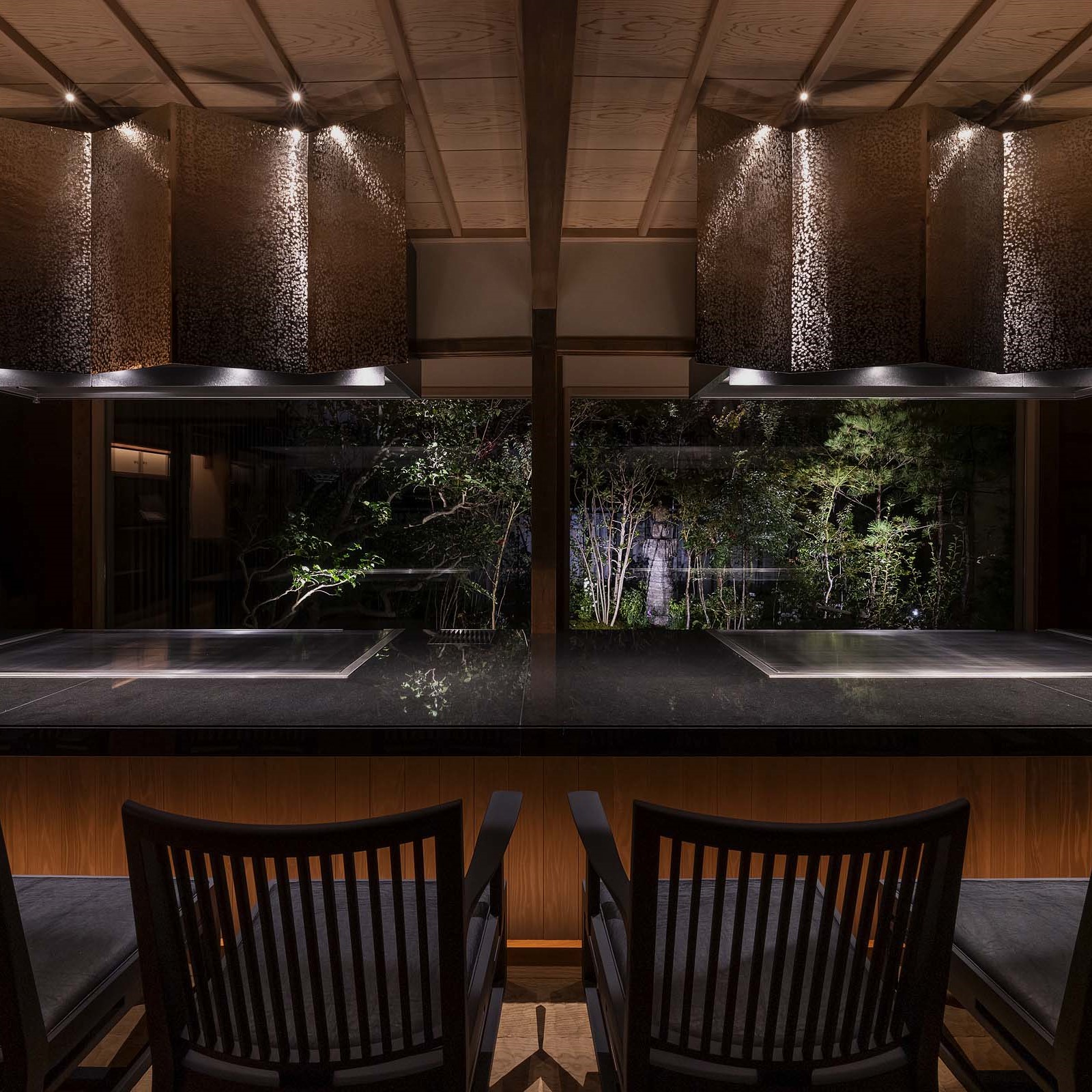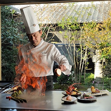 店内には、食器や家具など匠の作品をちりばめ、本来なら棚に飾るような芸術作品を 料理の器としてお使いいただきます。